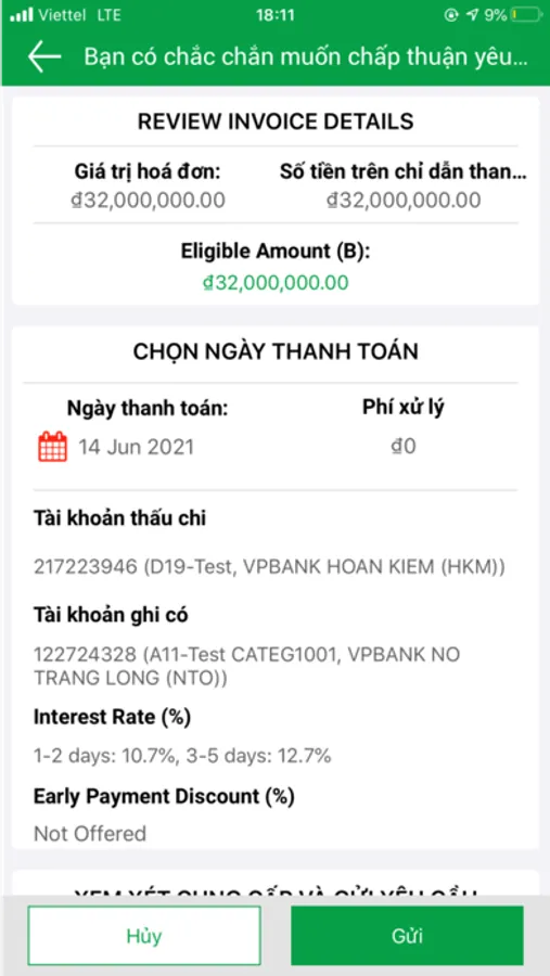 - Bên bán hàng tạo đề nghị giải ngân bao thanh toán cho hóa đơn đã được Bên mua hàng chấp nhận thanh toán.