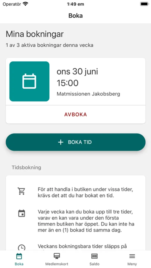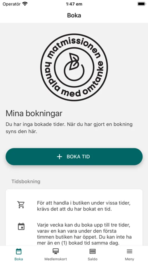 App for management of your Matmissionen membership. Book a time for your visit to the store, see your weekly balance and receive notification of current offers.