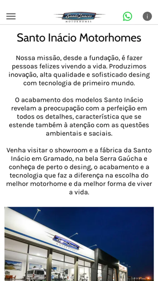 Este aplicativo é muito simples consta de vídeos de assistência técnica da nossa empresa onde mostra como funciona as partes da nossa casa sobre rodas, consta com um link direto de um de nossos funcionários e perguntas frequentes em cada video para sanar algumas dúvidas