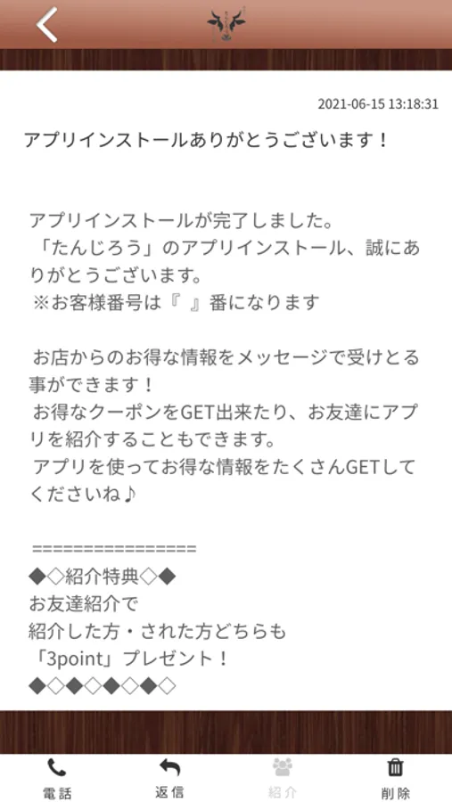 たんじろうのアプリをSNSを通じてお友達に紹介する事ができます。