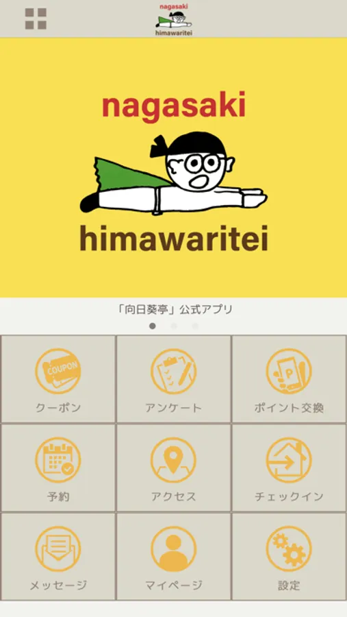 このアプリでは、向日葵亭の最新情報の受け取りや便利な機能を使う事ができます。
