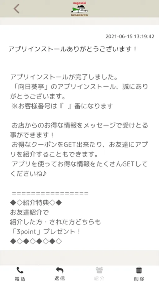 向日葵亭のアプリをSNSを通じてお友達に紹介する事ができます。
