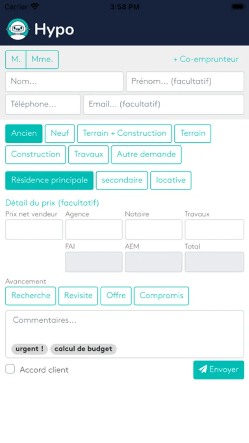 Pour vous faire gagner du temps et vous faciliter la tâche, votre formulaire de contact est désormais disponible directement sur l'écran de votre smartphone.