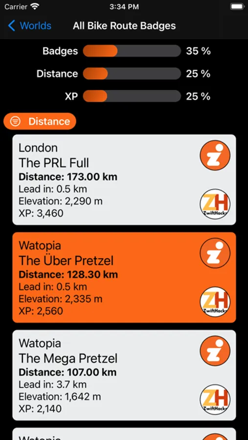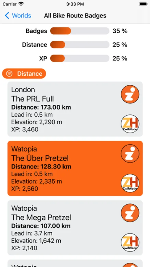 Direct links to upcoming run events on, for a route badge, ZwiftHacks.com