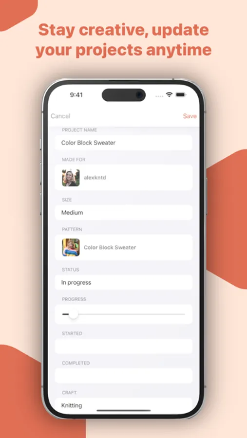 ■ Cast on a new project, optionally linking a Ravelry pattern.