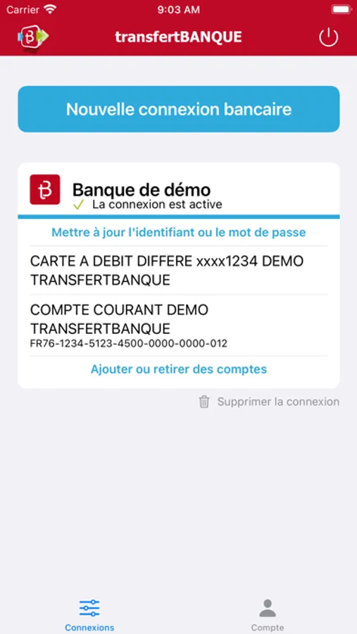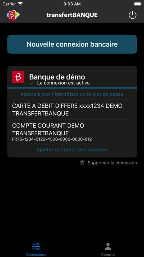 - Une meilleure communication avec l'application mobile de votre banque : lorsque vous voudrez connecter votre banque à transfertBANQUE, notre application mobile vous redirigera vers l'application mobile de la banque1, où vous pourrez vous connecter en toute sécurité afin d'accorder l'accès à vos comptes. Puis vous serez à nouveau redirigé vers transfertBANQUE pour finaliser la mise à disposition.