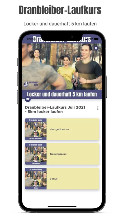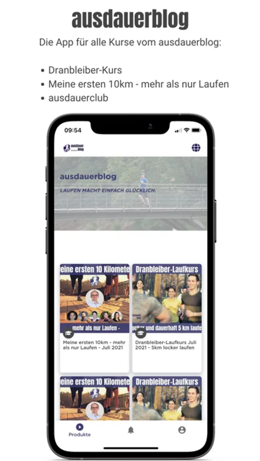 Die App enthält zusätzlich alle Kurse vom ausdauerblog: