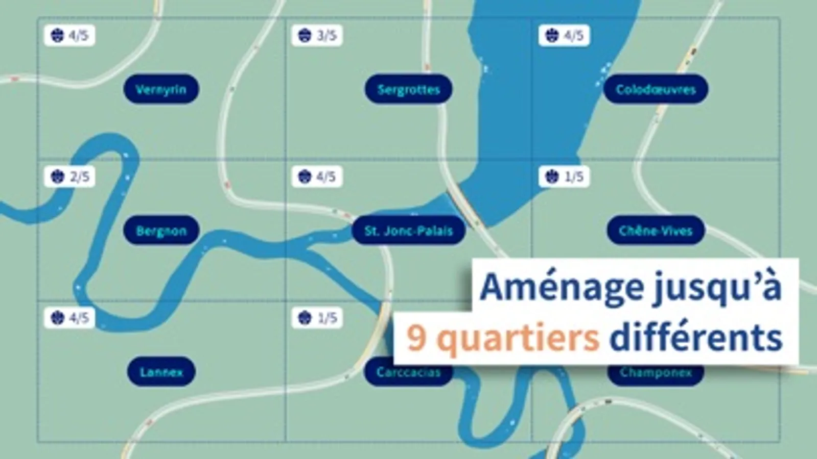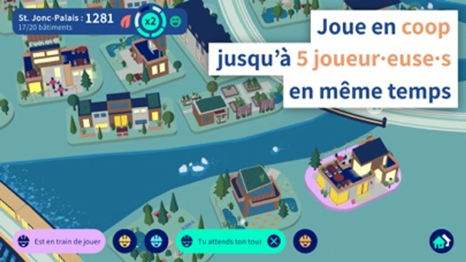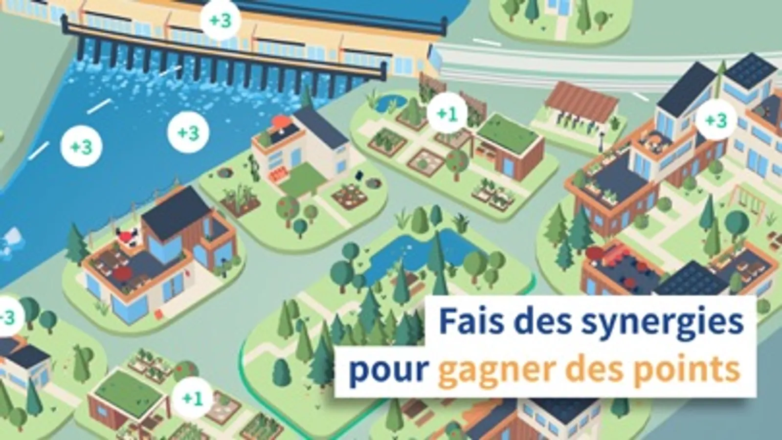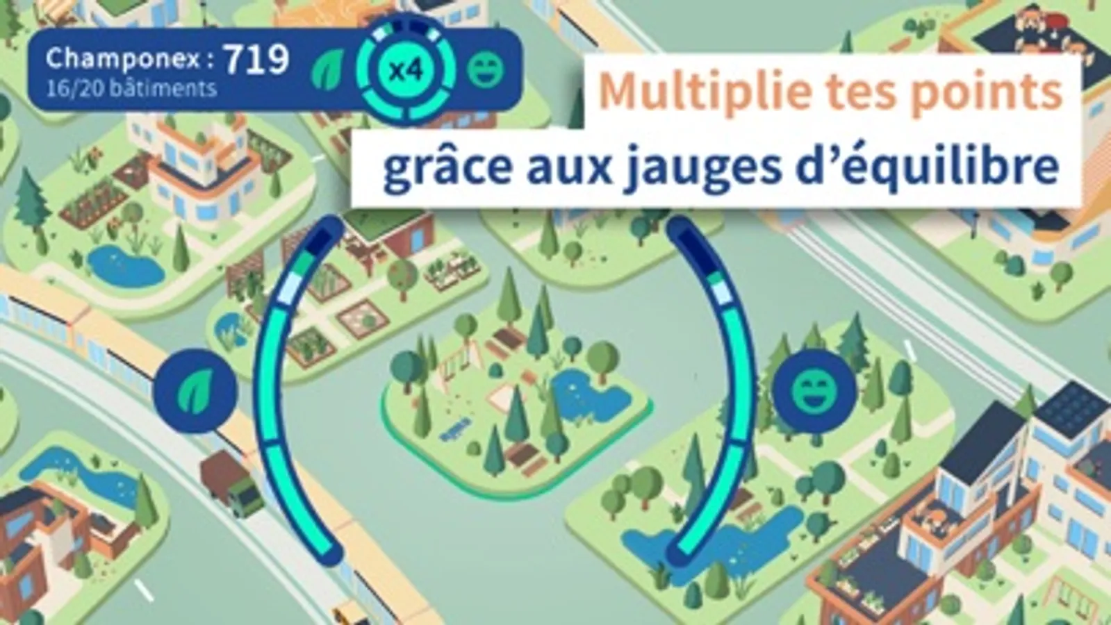 Équilibre - La ville de demain, te permet d’aménager les quartiers d'une version fictive de Genève en multijoueur. Le jeu propose une vision de la ville basée sur des principes de sobriété et de solidarité. Le gameplay consiste à placer des bâtiments dans l’espace limité d’un quartier en faisant de bonnes associations afin d'obtenir le meilleur score possible !