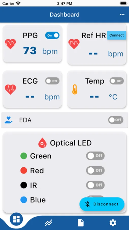 ADI Study Watch is an app to evaluate the reference watch from Analog Devices to monitor vital signs such as PPG, ECG, Temperature, EDA measurements. The users can stream, plot the raw data from sensors real time, log the selected data in the NAND flash of the watch device for later analysis, change configuration and settings for each VSM application.