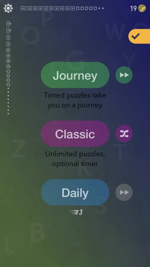 CLASSIC - Just play. There's no rush. Your progress is saved and the timer is optional.