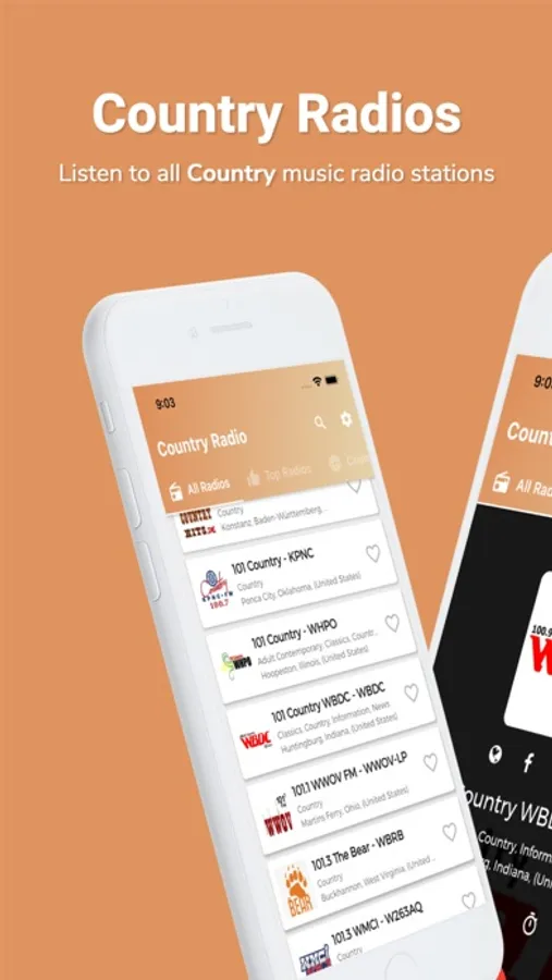 Listen to all Country Music radios for free, download Country Radio Online now!