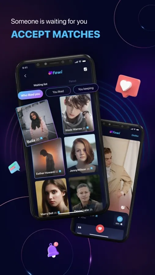 With its algorithm, Fowi suggests the level of suitability for you according to each profile so that you can decide to drop your heart and want to get to know the other person. And that's not all, verifying your image is also very important, the more detailed your personal information, the more Fowi will help you find quality profiles, connect & send messages comfortably.