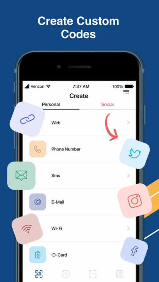 With QR Code: Reader, you can scan all qr codes and barcodes or create them by choosing one of many categories.