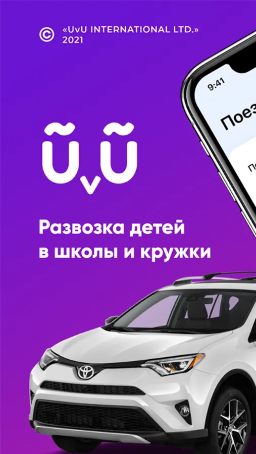 UvU - это безопасный сервис перевозки детей с умной системой совместных поездок.