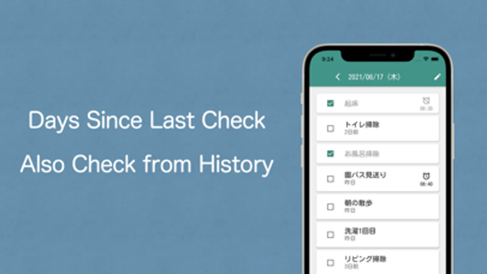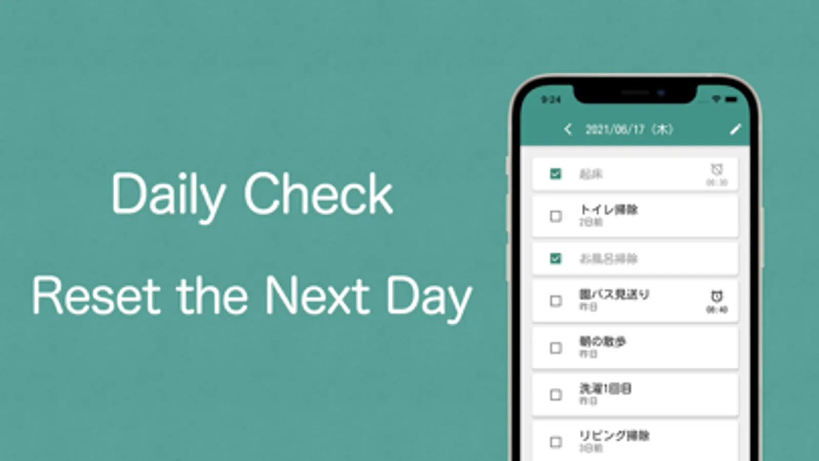 Checked tasks are reset the next day, allowing for repeated use every day. Additionally, it displays the number of days since the last check.