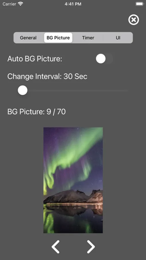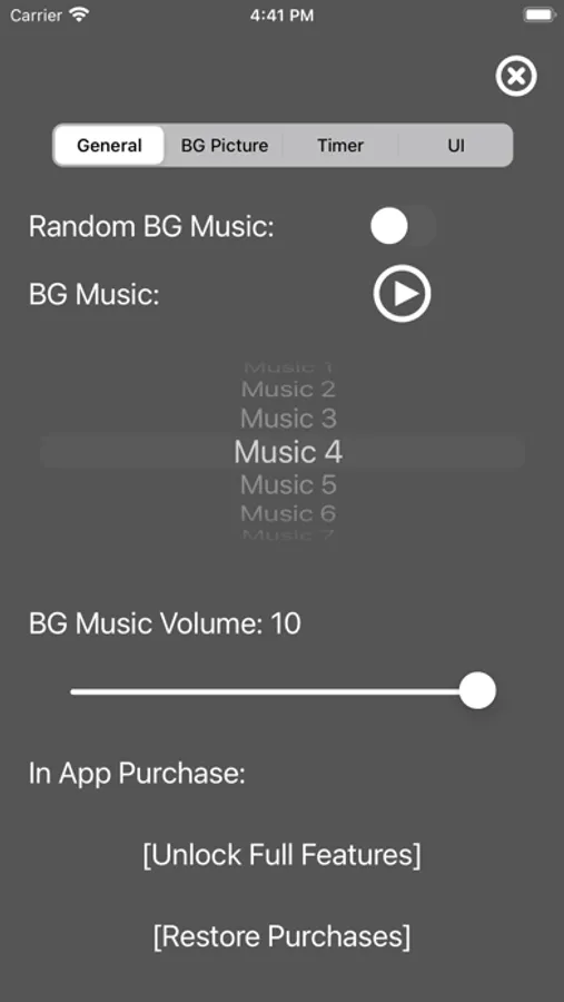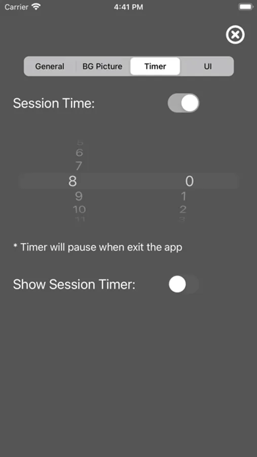 - Session timer 5min, 10min, 20min, 30min, 1 hr etc.