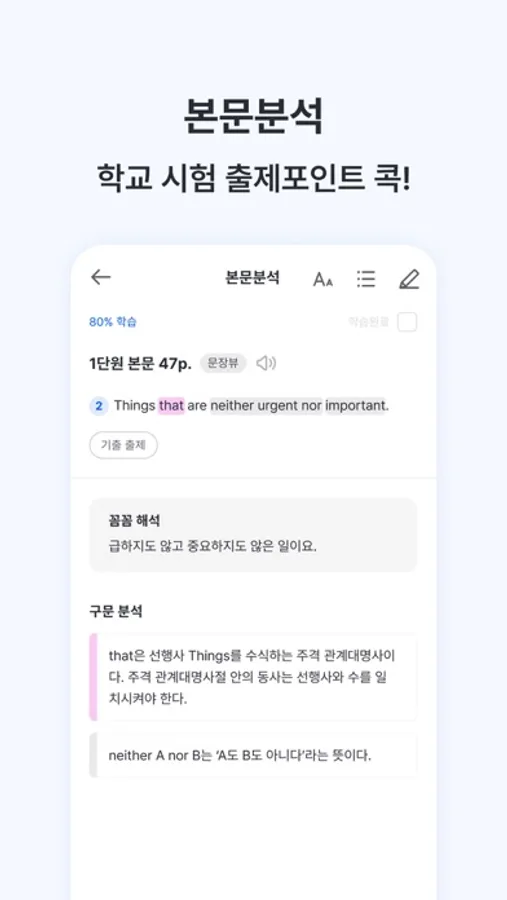 1. 본문분석 : 교과서와 부교재의 빈출포인트를 확인하세요.