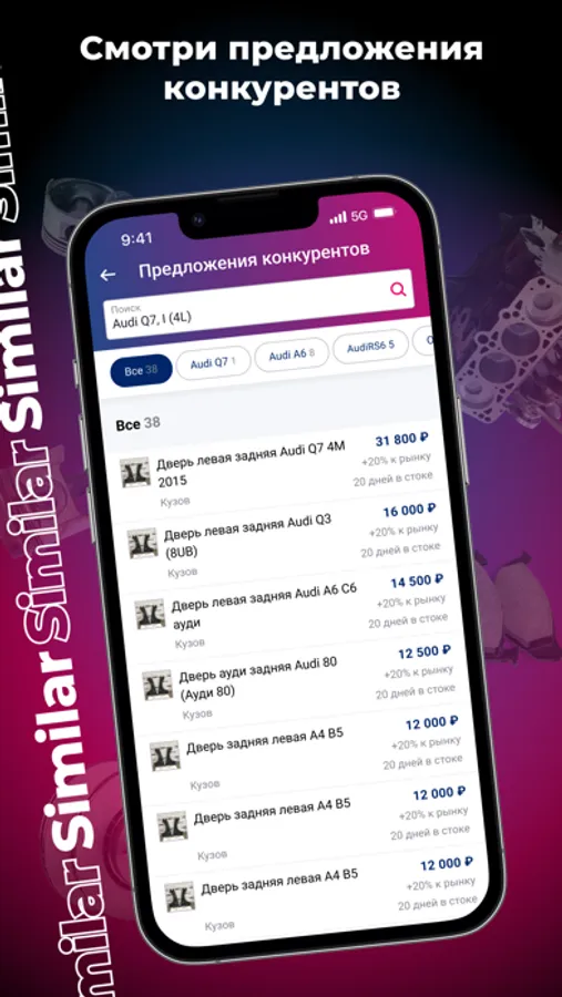 Если не можете определить цену запчасти приложение подскажет ее рыночную цену используя bigdata. Система СтокВижн проанализирует актуальные цены для всех загруженных в приложение запчастей и даст рекомендации по коррекции цены, чтобы не терять прибыль.