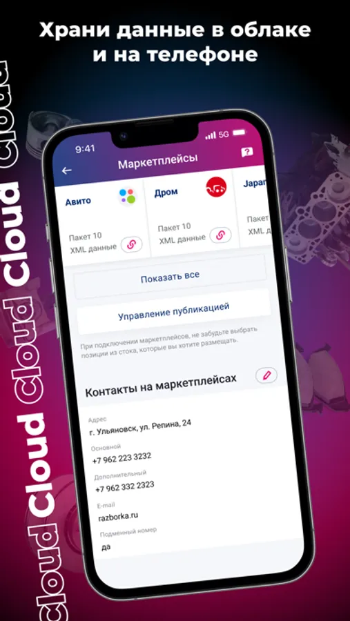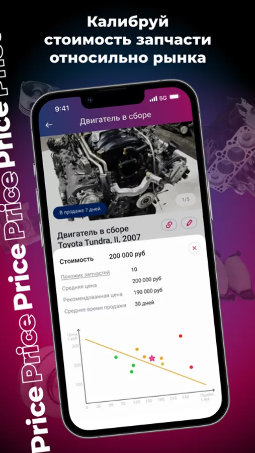Вносите автомобили приобретенные для продажи в приложение и оно само разберет их на запчасти. Правильно назовет запчасть с указанием важных поисковых параметров автомобиля (кузов, год, модельный ряд). Останется только внести фотографии и указать цены.