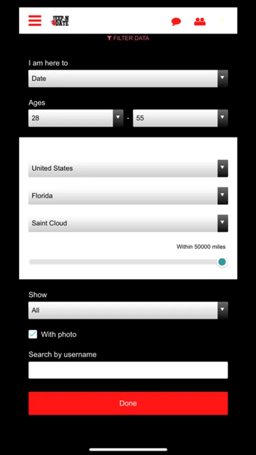 Jeep-N Date is the only app specifically created to bring single Jeep owners together both online AND in person! Chat and meet in a virtual reality scenario before meeting in person! Instant chat notifications will deliver messages to you and from you quickly and efficiently! Meet up in simulated rooms such as on a yacht, in a movie theatre, an office, or even play various games together like chess, checkers, or tic tac toe.