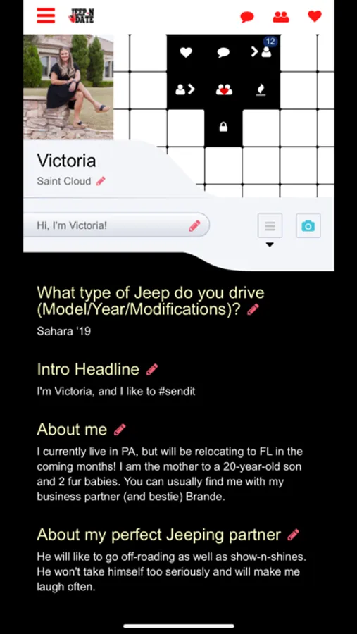 In order to join the site, you must be both single and a Jeep owner! Here at Jeep-N Date, we pride ourselves on not using fake profiles. All user profiles and pictures are screened and approved by a staff member! Jeep-N Date is not only a networking app - it is a social media tool to help bring single Jeep owners together to meet up in person! Not only do you get to chat online with fellow Jeepers... you also get the chance to meet up virtually in a 3D scenario AND the potential to meet up in person!