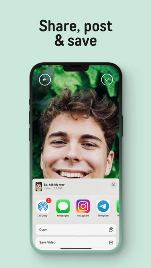 - save and share videos everywhere, including popular social networks like Instagram, Facebook, Youtube and other