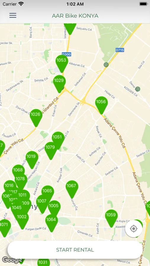 mobile application. You can see the nearest stations on the map. For bike rental, you must first subscribe and define an active credit card in your account. Then you can go to the nearest park and complete the rental process with the bike number on the mobile application.