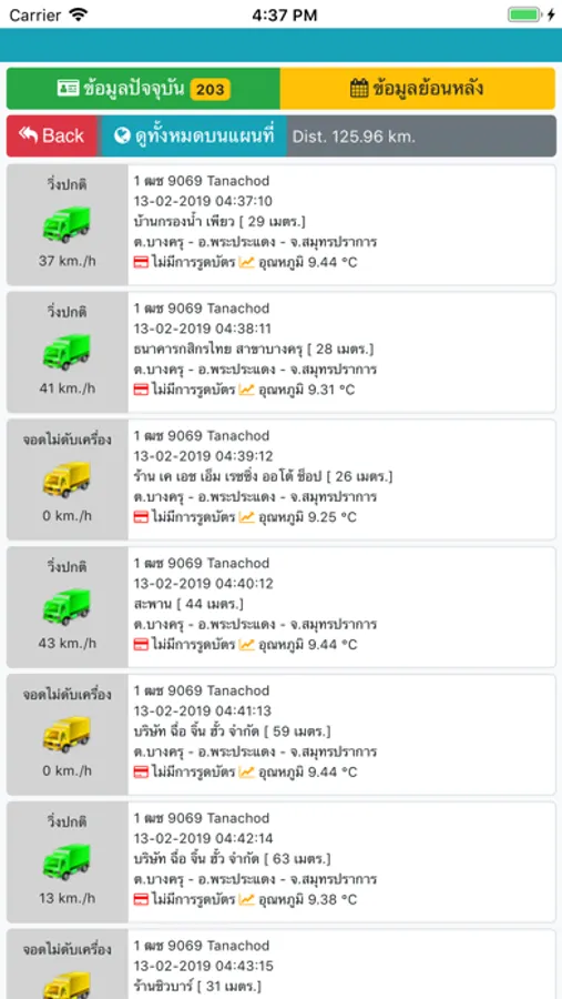 - เรียกดูข้อมูลย้อนหลังของรถแต่ละคันในช่วงเวลาที่ต้องการ