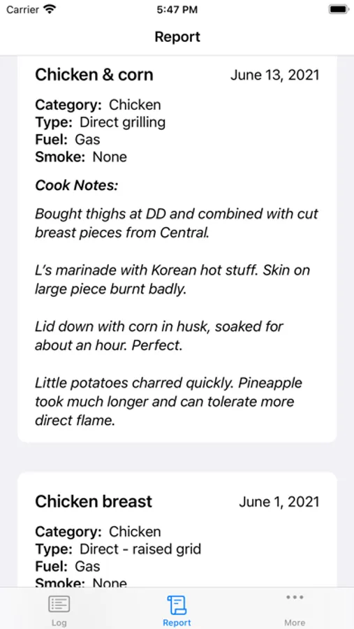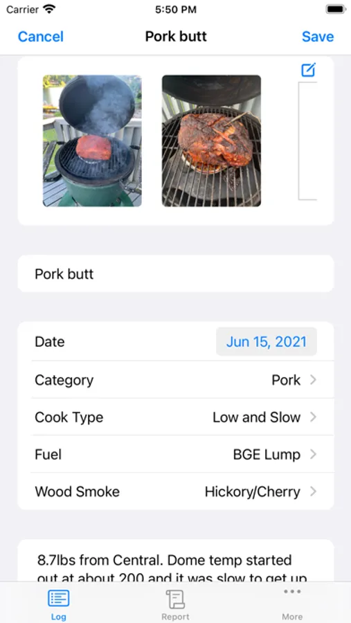 Easily store notes and photos of your barbecue cooks. Quickly review these 'messages to your future self' before your next cook to remember what went well, and what didn't.