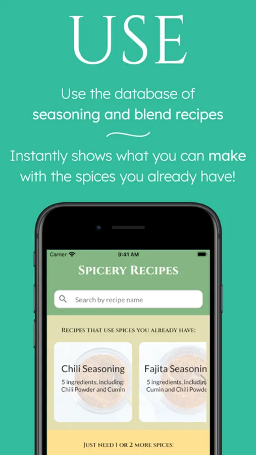 - Save your spice list on a cloud server in case your device is lost or upgraded
