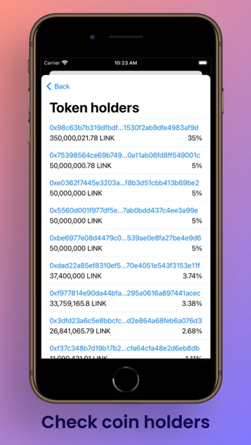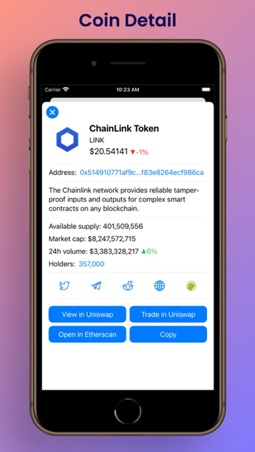 - Tapping on one coin, tx or other addresses will redirect you to Uniswap/Etherscan;