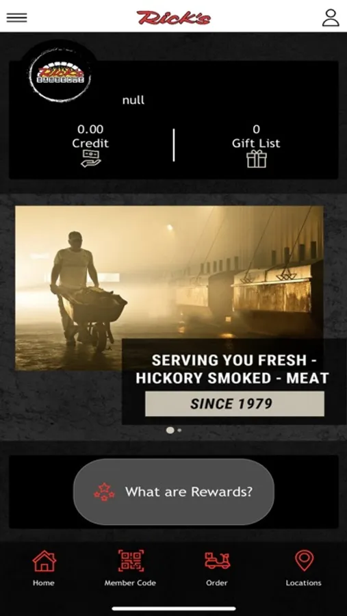 Earn rewards, order ahead, and receive deals; it's all in the Rick's Barbecue app.