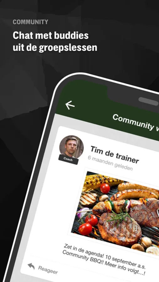 - Houd je trainingprogressies bij en volg je trainingbuddies.