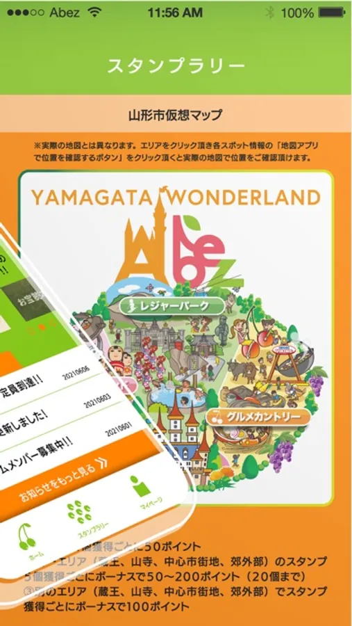 Abezアプリに掲載されている体験・抽選は、山形市が提供しています。Apple Inc、アップルジャパン株式会社は、一切関与しておりません。また、提供された情報を利用して生じた一切の障害について、Apple inc、アップルジャパン株式会社は一切の責任を負いません。