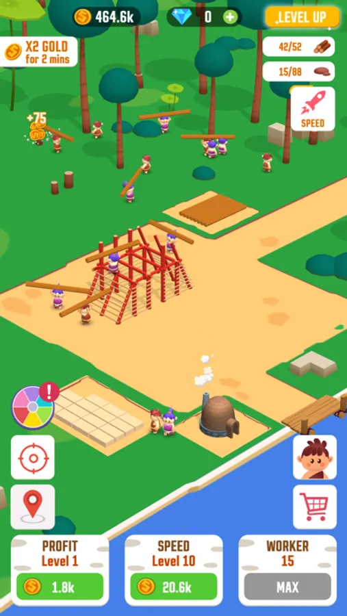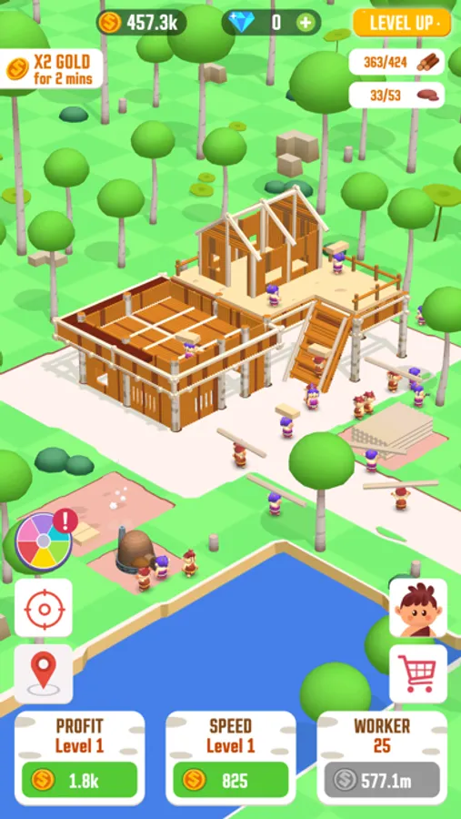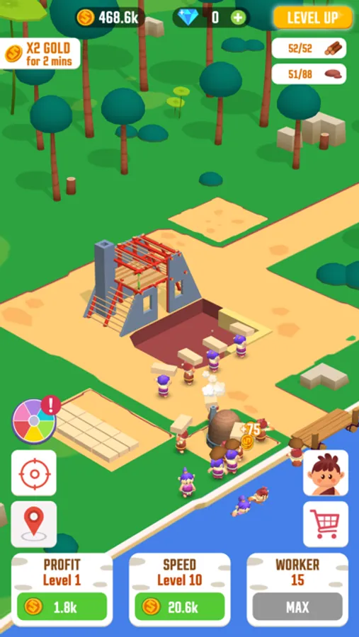 In this builder simulator game, you can tap to earn coins and diamonds. The more coins you possess, the more resources you are likely to gain. Wisely assign workers with different tasks, from brick making, lumberjacking, to house building. You are in total control of managing the process to optimize workflow and get the houses built as perfectly as possible.