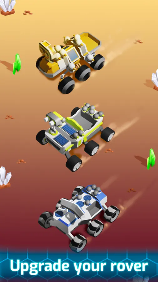 UPGRADE your rover to earn more money. Expand your cargo to mine more minerals, upgrade your speed to increase the efficiency of your space factory.