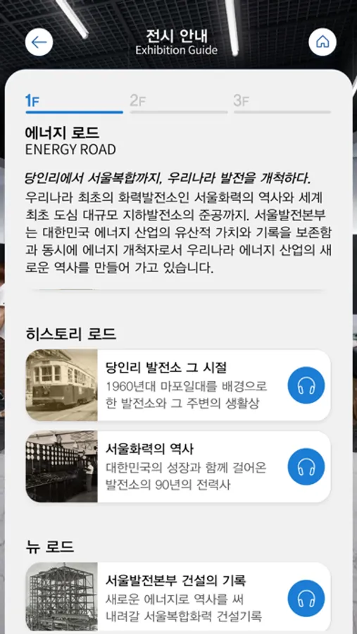 우리나라 최초의 화력발전소이며 대한민국 에너지 산업의 최초 발상지라 할 수 있는 서울화력발전소부터 세계 최초의 도전이었던 도심 대규모 지하발전소의 성공까지. 긴 시간 서울의 에너지가 되어 온 서울발전본부의 역사를 보존하고 있습니다. 또한, 미래 에너지 산업에 대한 비전을 제시하며 시민들에게 전기에너지의 중요성과 안전성에 대한 정보를 전달합니다.
