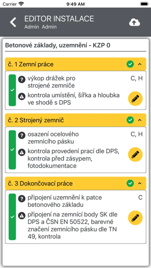 Aplikace je propojena s webovým prostředím, které definuje sadu kontrolních zkušebních plánů a umožňuje uživatelům jejich průběžné doplňování dle provedených kontrolních zkoušek v průběhu dodávky projektu.