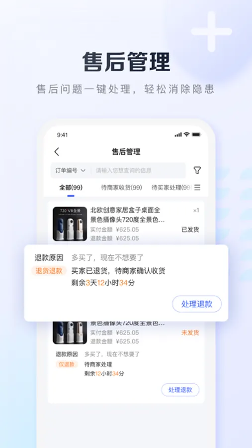 【高效售后】实时接收平台服务请求,一键处理客诉问题