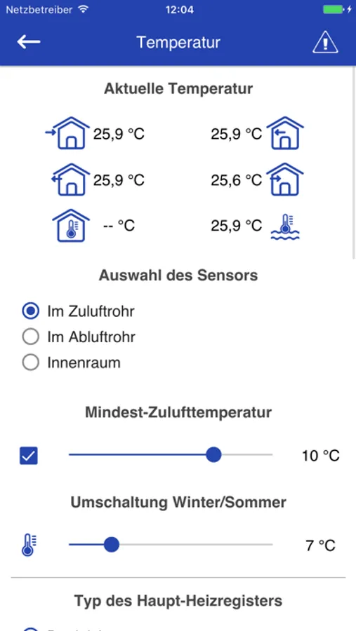- Einstellen der Zulufttemperatur