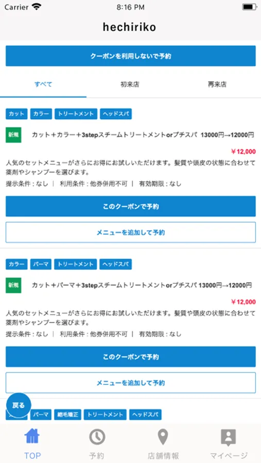 お得なクーポンが配信されます。ネット予約時にクーポン利用での予約も可能なので来店時もスムーズに施術頂けます。
