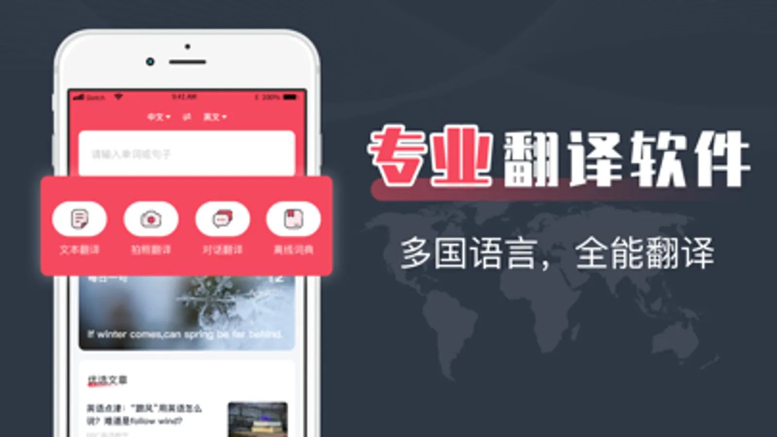 1,文本翻译:支持全球多种语言翻译,真正意义上的全能翻译软件,您的随身翻译官!
