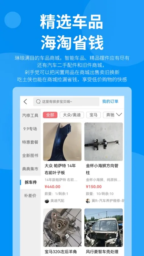 琳琅满目的车品商城,智能车品、精品摆件应有尽有。还有汽车二手配件和旧件商城,剁手党可以把闲置用品在商城出售,卖旧换新;吃土侠也能在商城捡漏省钱,享受低价购物的快感。