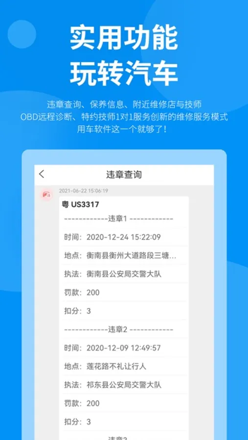 违章查询、保养信息、附近维修店与技师、OBD远程诊断、特约技师1对1服务......创新的维修服务模式,用车软件这一个就够了!