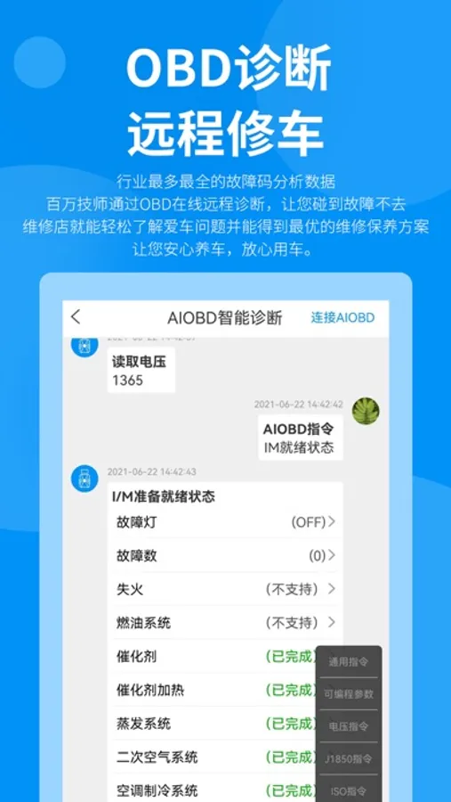 【OBD诊断 远程修车】行业最多最全的故障码分析数据,百万技师通过OBD在线远程诊断,让您碰到故障不去维修店就能轻松了解爱车问题,并能得到最优的维修保养方案,让您安心养车,放心用车。