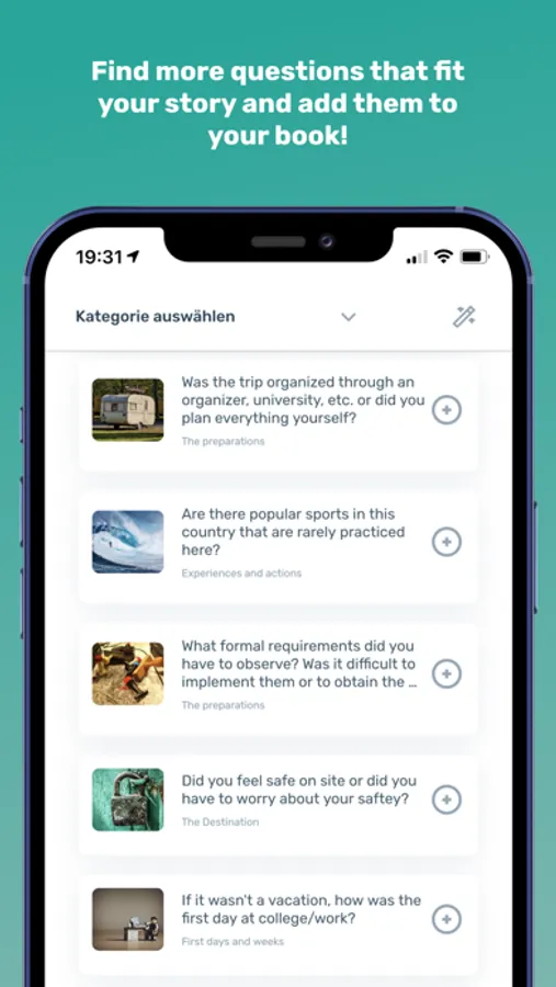 The principle is simple: We have developed a huge collection of questions and select 52 questions for you. Answer one every week - or all at once.