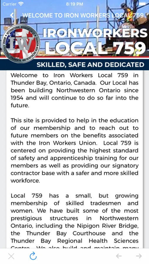 The Ironworkers Local 759 mobile app is designed to educate, engage and empower our Members. This app is to be used as a tool to better understand the benefits available to our Members working in the Industry. This app is only available to Ironworkers Local 759 Members.