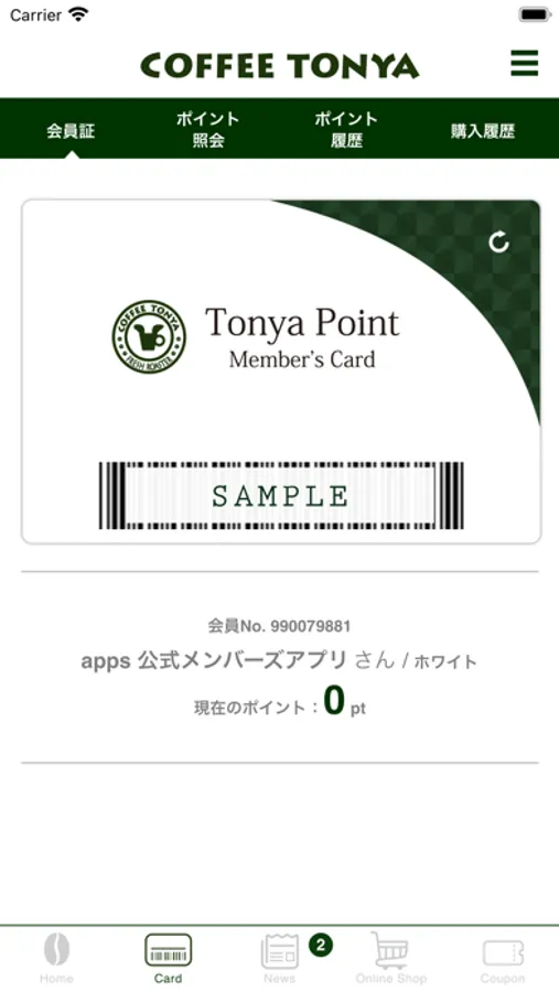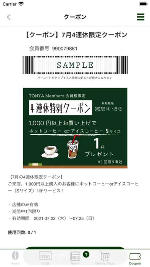 ・会員証バーコード(店頭でのご購入の際にレジでご提示ください)