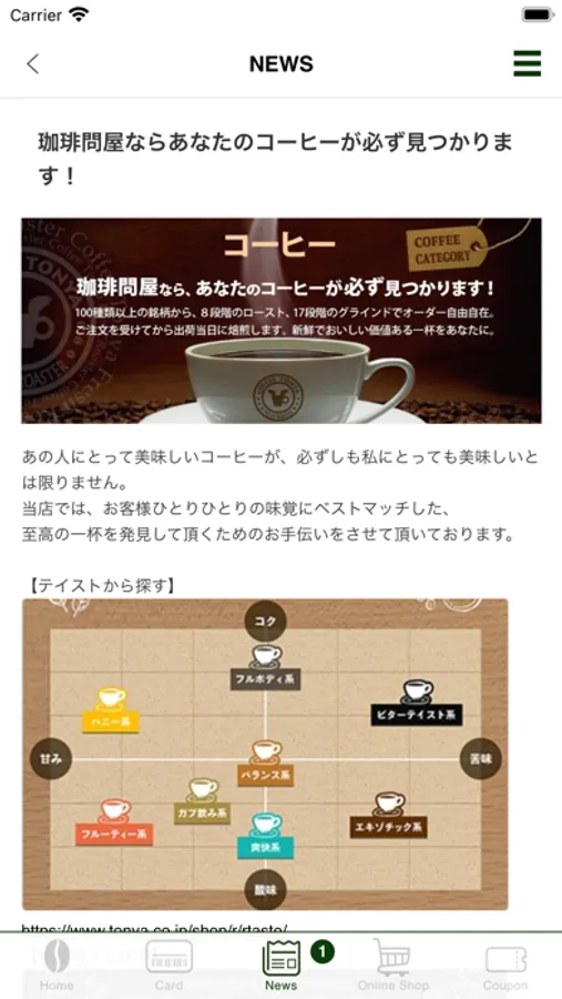 珈琲問屋公式アプリでは店舗でポイントカードとしてご利用頂けるだけでなく、お得なクーポンやお買い得情報をお届けいたします。