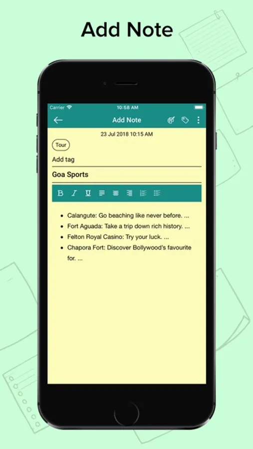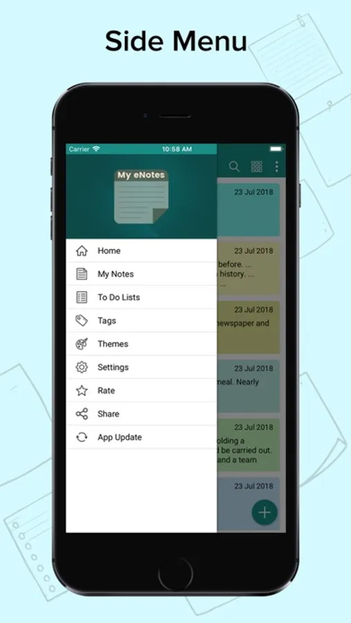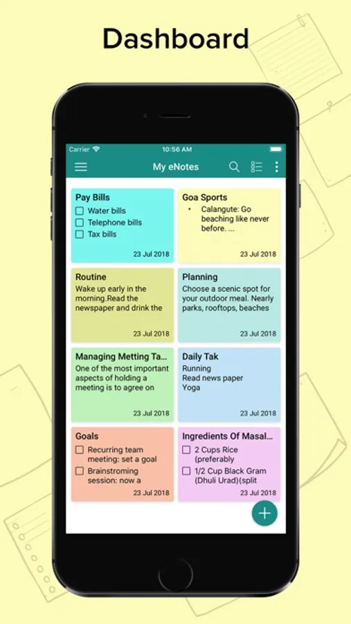 My eNotes application organize and search for vital Notes/To Do List records added in the application. It can be reviewed and revised for better and fast operability. My eNotes is the simple option of keeping important notes. Keeping notes, memos, shopping list, messages and to-do-list became very simple with this notepad application. There is no need to carry the notepad physically. Never lose your notes again, whatever added in the application it can be retained in future for review and revise. Notes/To Do List is organised in different colors.